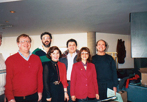 Silvia Sandoval en cena anual de la SCD, junto a los compositores: