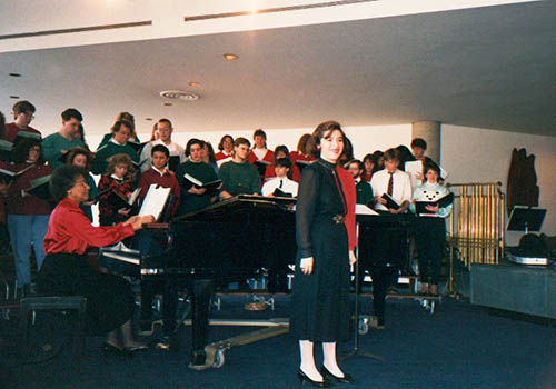 Silvia Sandoval dirigiendo el College Choral (Universidad