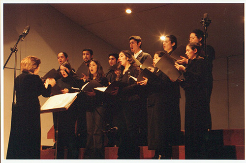 Silvia Sandoval dirigiendo a sus Cursos de Práctica