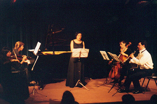 Camarda, a la arpista Tatiana Rezcinsky, y Sonia Morales.
