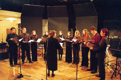 Silvia Sandoval junto a los integrantes de "Madrigal