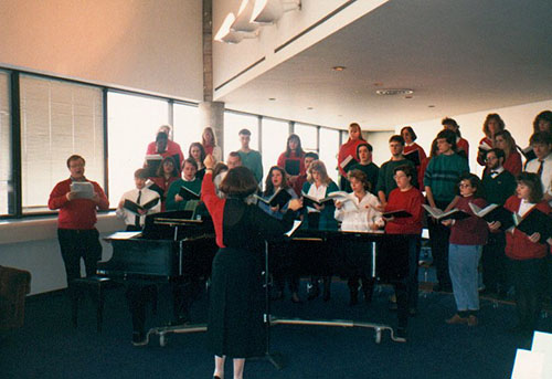 Silvia Sandoval dirigiendo el College Choral (Universidad